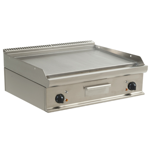 – Materiaal: roestvrij staal – 2 apart regelbare kookzones – Braadplaat glad – RVS spatschermen aan drie zijden – Veiligheidsthermostaat – Uitneembare vetopvangbak – Gewicht: 93 kg – Afmetingen: B 800, bakplaat: 795 x D 700, bakplaat: 530 x H 270 – Temperatuur 100 /+270 °C – Aansluiting: 400 V – 50-60 Hz – 10,8 kW
