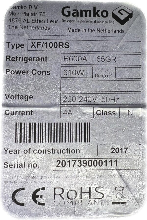 Gamko Flexbar XF/100RS Glazenvriezer 1 Deurs 2017