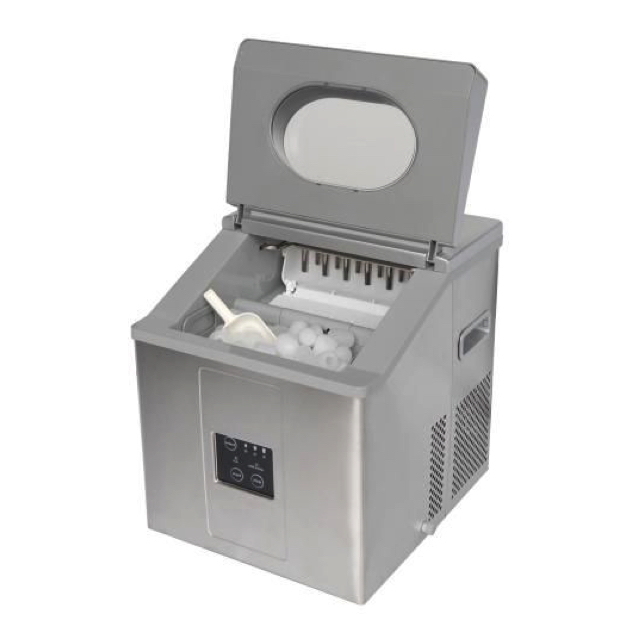 – 3 grootte ijsblokjes selecteerbaar:, ong. Ø 23 x H 29 mm, ca. Ø 25 x H 32 mm en, ong. Ø 27 x H 33 mm – Behuizing: roestvrij staal