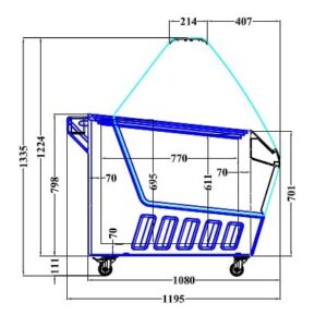 EAN code: 7435137797746 Breedte (mm): 1590 Diepte (mm): 1195 Hoogte (mm): 1335 Afm. inwendig bxdxh(mm): 1410x770x653 Spanning (Volt): 230 Inh. Bruto (Ltr): 630 Koelmiddel: R 290 Verlichting: Ja Cap.eenh./keer: 16×5 ltr Temp.bereik(°C): -22/-15 Type Koeling: Statisch Verrijdbaar: Ja Ontdooisysteem: Automatisch Max. omg. temp.(°C): 30 Gewicht bruto (kg): 195